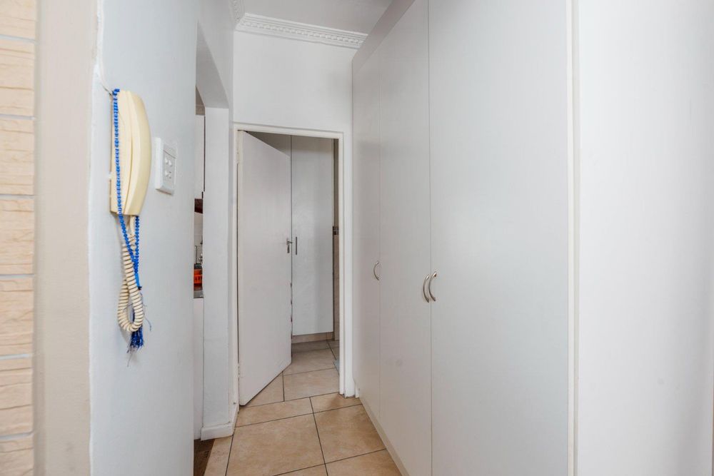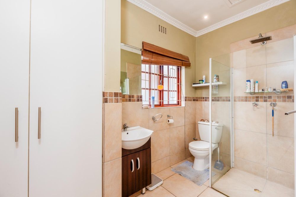 * Bedrooms: There are two bedrooms with laminate flooring and built-in cupboards, one with walk-in cupboards and doors that open to the back courtyard and a skylight with vertical blinds you can open and close depending if you want light or dark, both providing comfortable living spaces.