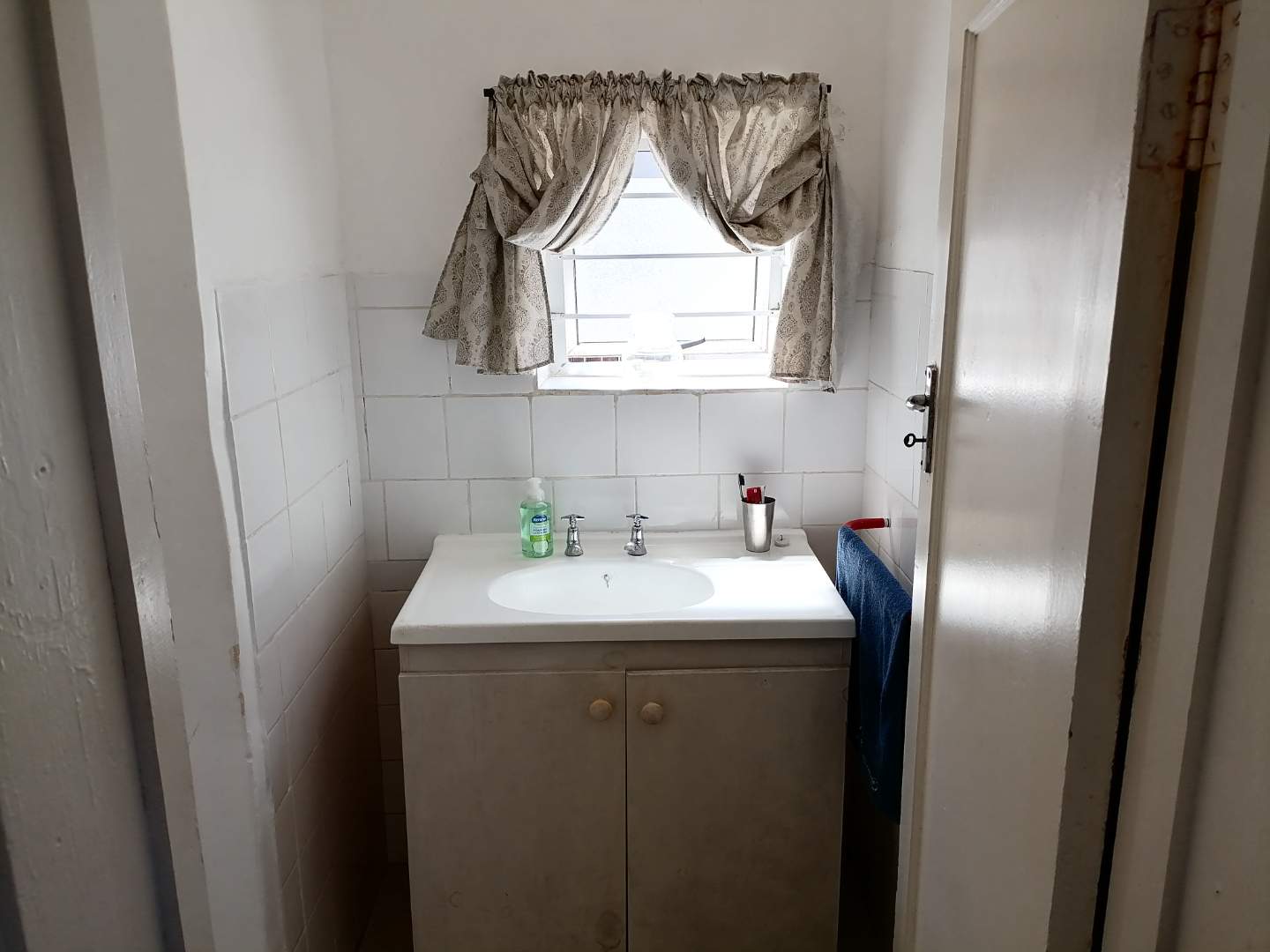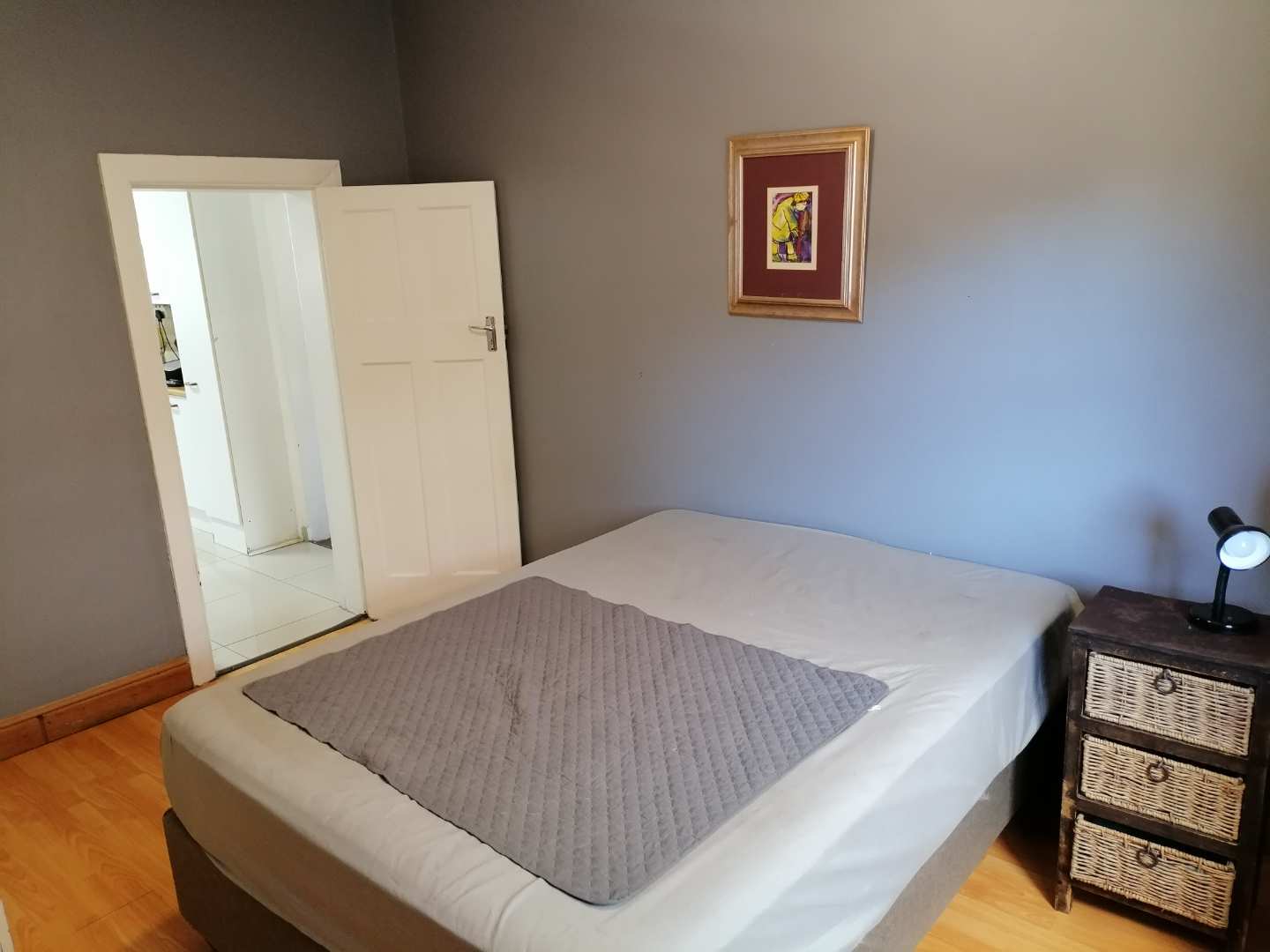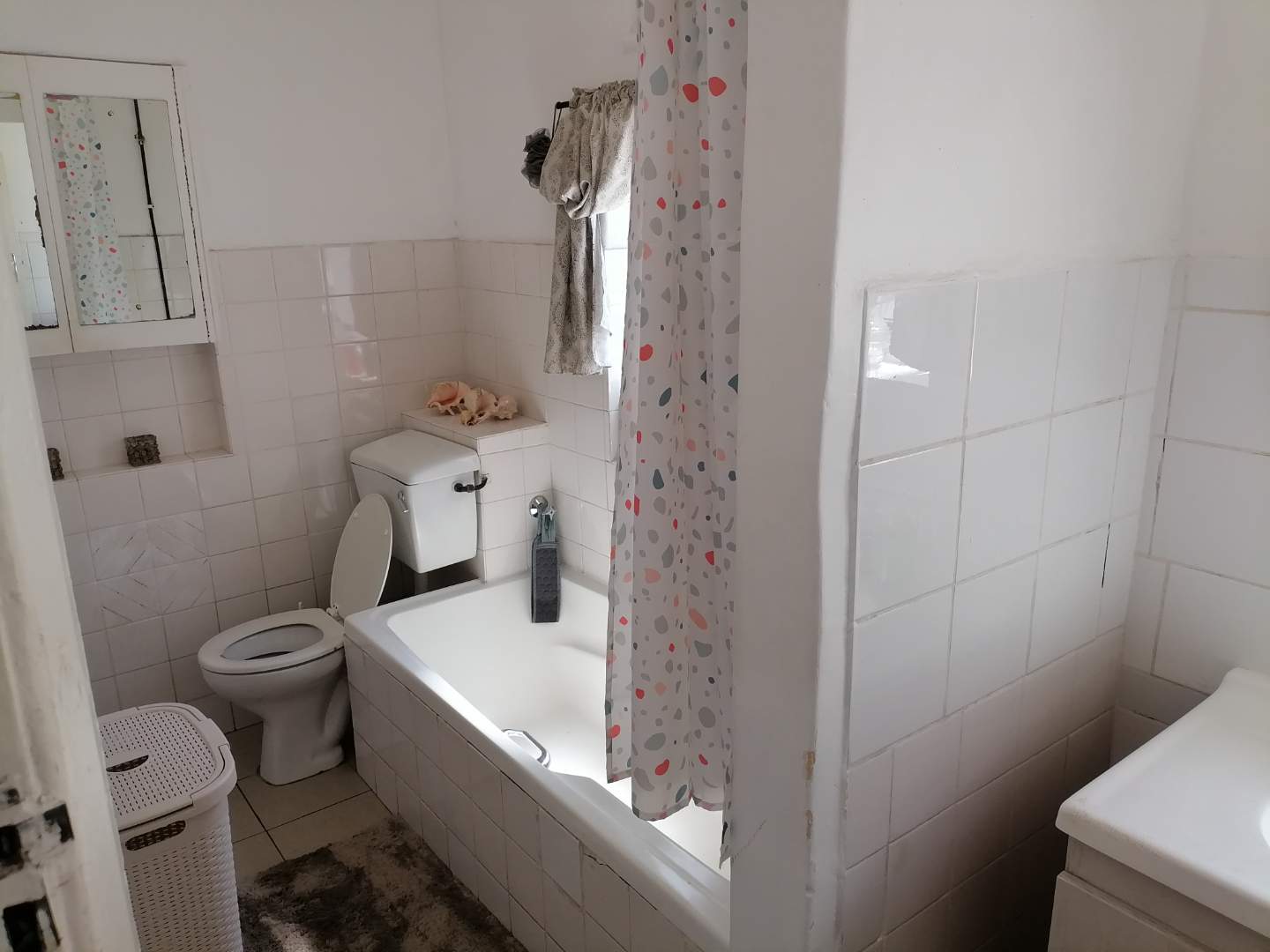 A light and sunny family bathroom is located off the kitchen and features a bath with an overhead shower, toilet, and large basin. The main bedroom offers ample built-in cupboards and excellent storage. The adjacent storeroom may be incorporated into the main bedroom to create additional space, serving perfectly as a dressing room, home office, or potential en-suite. The remaining two bedrooms are both spacious, light-filled, and fitted with built-in cupboards.